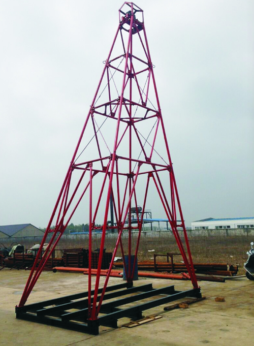 SGX-8型钻塔型用于配合300米至600米岩忿钻机钻进孔深500米以内,作倾角75°-90°钻孔升降钻具直、斜两用钻塔。其特点为具有承载能力适中,结构紧凑、合理,拆装方便、搬运成本低等特点,适合XY-2、 XY-3型岩芯钻的配套使用。